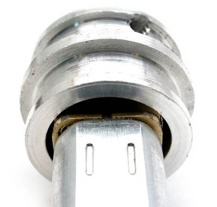 alignment bushing points that assist in keeping the wheel spinning true.