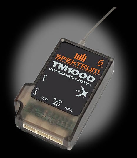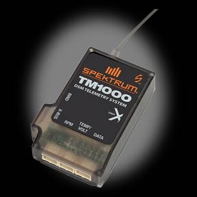 The TM1000 telemetry module transmits important flight information to aircraft telemetry compatible transmitters. The module can provide important flight log information such as RF link performance and receiver battery pack voltage. The TM1000 telemetry module can also provide flight pack information, which could include the flight pack battery for electric-powered aircraft, or ignition batteries in gas engine-powered aircraft. The module can provide temperature information, as well as rpm with rpm sensors available separately.