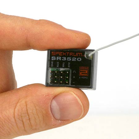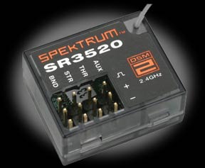 The SR3520 DSM2 3-channel micro receiver combines small size and low weight with the advanced speed of DSM2 technology. Micro vehicles are still one of the latest trends in surface related RC products, and now micro- and mini-vehicle enthusiasts can benefit from the low latency and high resolution offered by DSM2. This 3-channel micro receiver combines the advanced speed of DSM2 technology with small size and low weight.