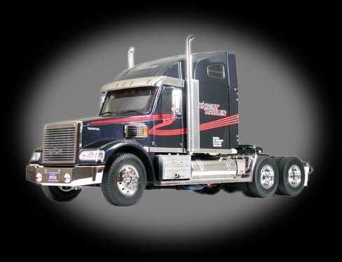 This 1/14 scale R/C Tractor Trucks Item features an originally designed truck body. Hood, large roof spoiler, interior, and lights (clear orange parts), which have been artistically rendered in exquisite detail. Grill, tank, exhaust and steps have been beautifully rendered with metal plated parts. Kit includes stickers and 540 motor. 7.2V battery pack and R/C system are sold separately.