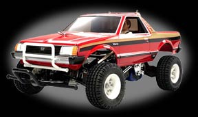 Tamiya brings back another R/C classic with this Subaru Brat. Longtime fans will once again experience the nostalgia of their childhood and beginners can enjoy the easy operation of this colorful off-road truck. The Bi-drive Recreational All-terrain Transporter was created by Subaru in the late 1970's from their earlier 4WD station wagon model for the US market. Powered by a flat-four engine ranging from 1.6 to 1.8 liters in displacement, this pickup had the unique feature of having jump seats welded to the truck bed, which allowed it to be imported as a car instead of a truck. One of the car's more famous owners was former US President Ronald Reagan, whose red Brat is restored and displayed at his former residence in California.