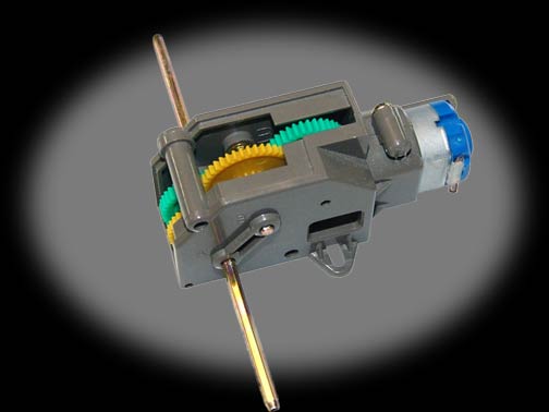 The Tamiya 4-speed crank-axle gearbox has four possible gear ratios, including the highest gear ratio of Tamiya's gearbox series, 5402:1, as well as 126:1, 441:1, and 1543:1. This gearbox also features a worm gear, which locks the output shaft when the motor is not turning. A clutch gear prevents the gearbox from destroying itself in case the output shaft gets stuck. The kit comes with all parts necessary to build the gearbox in any of the four possible configurations.