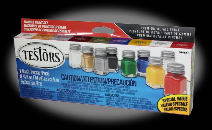 Testors All-Purpose Gloss Enamel 8 Color Paint Set This kit includes 8 1/4 oz. high quality Testor Enamel paints, a brush and tray.