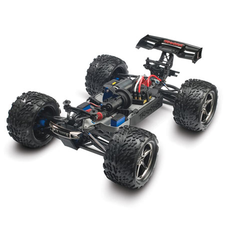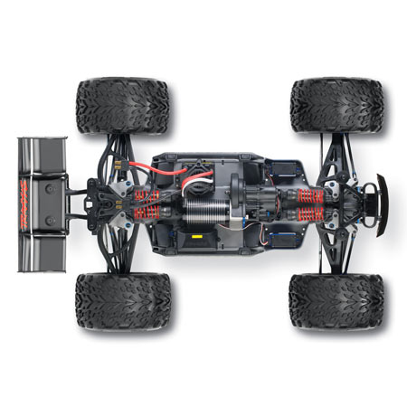 The Traxxas E-Revo was designed to be "Brushless Ready." Now, with the help of Castle Creations, E-Revo is officially brushless equipped. Power-hungry electric monster truck racers can purchase the ground-breaking E-Revo complete with a factory-installed and programmed Castle Creations Mamba Monster system. This heavy-duty setup includes Castle's 2200kV motor for full 6S LiPo (25.2 volts max) compatibility, which gives E-Revo the ability to exceed 50mph with wheel-lifting torque and brutally quick acceleration. The Mamba Monster controller features a cooling fan and heavy-duty construction with oversized 6.5mm connectors while the motor uses a 5mm rotor shaft for added durability. Secure mounting keeps the ESC and on/off switch in place without relying on servo tape. The E-Revo requires no modifications to handle the extra power; all of the drivetrain and transmission components were designed from the start for exactly this type of high-amp, high-rpm horsepower. Super-Duty Revo driveshafts, Torque-Control slipper clutch, an oversized steel idler gear and rubber sealed bearings are just a few of the features that make E-Revo ready for all the horsepower you can handle. Also new on the E-Revo Brushless Edition is the Traxxas TQ 2.4Ghz radio system that practically eliminates frequency conflicts while delivering the long range and reliability you expect from Traxxas.