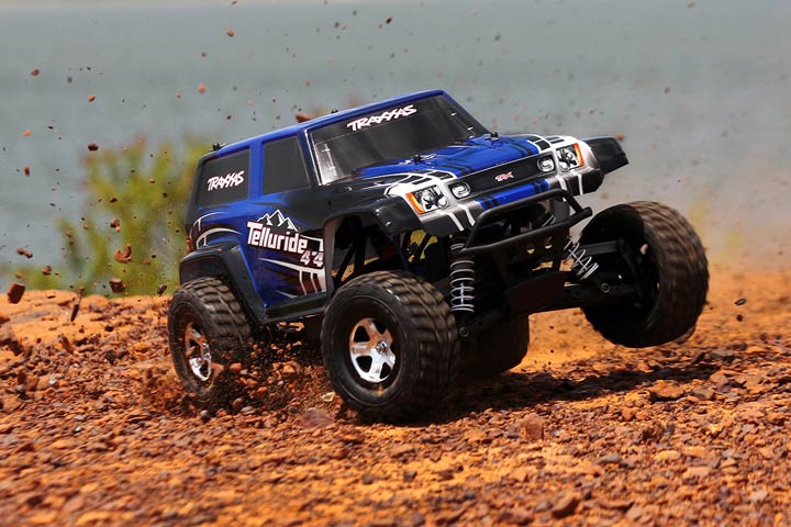 </div>Telluride: A great town in the Rocky Mountains that symbolizes rugged adventure, extreme terrain, and outdoor fun. The Traxxas Telluride 4X4 captures that spirit in a new off-road adventure vehicle that is engineered to go to places in the farthest reaches of your imagination. Pack it in your RV, load it in your Jeep®, take it on the trails. 4-wheel drive traction, specially tuned differentials, and long-arm suspension give it sure-footed rock crawling prowess. Off the rocks, the XL-5 ESC and Titan 550 motor dish out high-speed driving excitement. It's all waterproof, so the fun keeps going through water crossings, mud, and even new mountain snow. The Telluride 4X4 is fully assembled, painted, and Ready-to-Drive® with included 7-cell 8.4V NiMH battery pack and charger.</font></p>