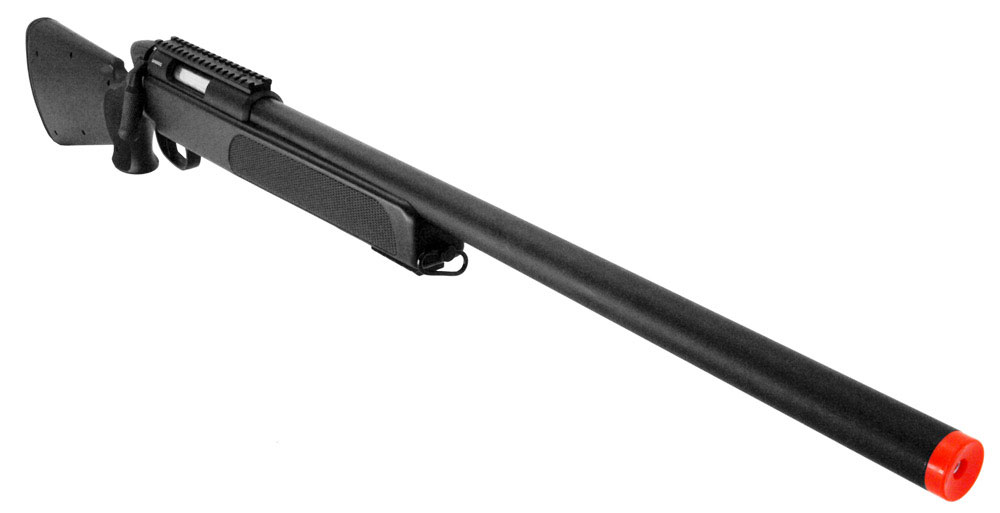 This Sniper Rifle is a replica of M50, a US marine corp sniper rifle. This M50 has a reinforced spring pushing out 400+ fps with 0.2g bb. It has a clean and sleek design and attachments for optional scope and bi-pod. With a high power bolt action and a long metal barrel, this gun will shoot great distance with great accuracy. It built with metal barrel, internal and steel bolt. Built in 20mm Scope mount rail (Ready for any scope installation in seconds). Adjustable hopup. Bipod ready (Ready for a bipod to be installed in minuts). Bi-Pod not includedFEATURES
