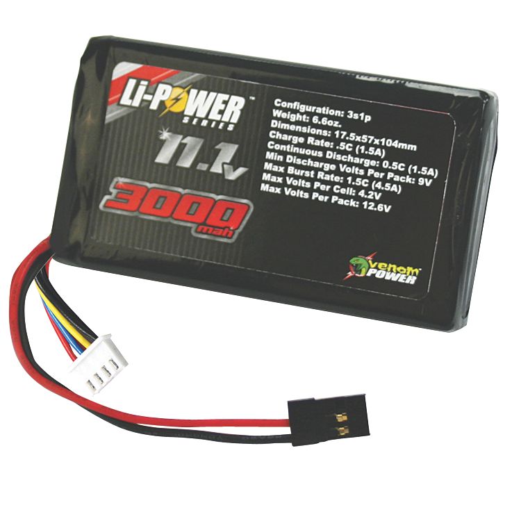 Feed your power hungry computerized radio a new potent diet of Li-Power! This 11.1V 3000mah LiPO pack is perfect for your M11 and MX3 transmitters. In addition to more power and longer life, your radio will instantly shed weight which means more driver comfort!