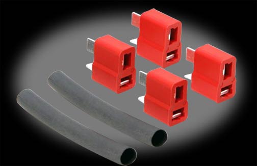 One package contains four female connectors and two pieces of heat-shrink tubing.