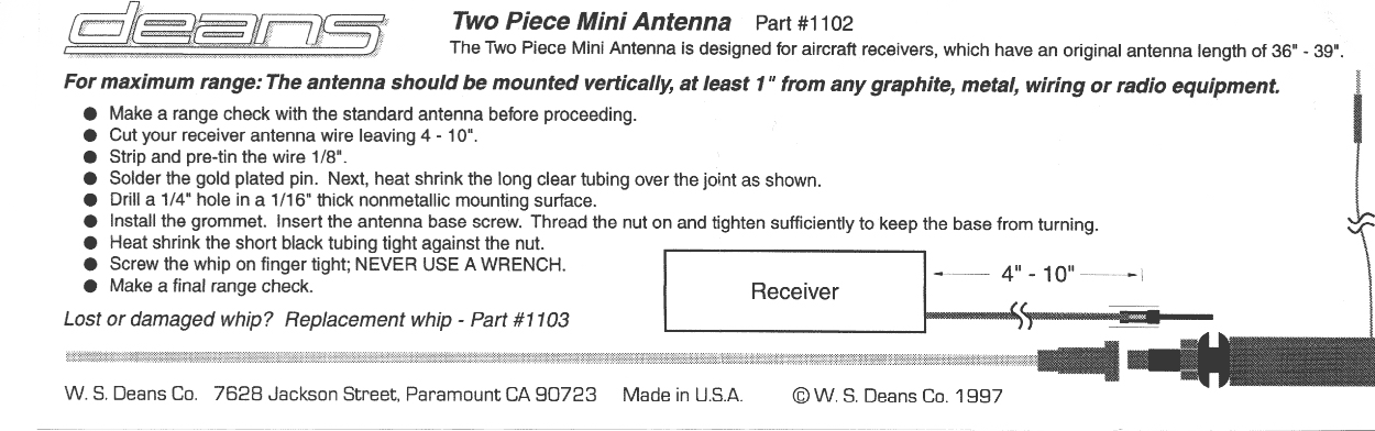 loaded design allows a shorter receiver antenna while maintaining adequate