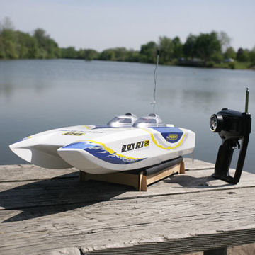 Like all other Pro Boat models, the Blackjack 26 Brushless EP RTR is completely ready to run. It comes with a programmable ESC for fast, reliable and convenient performance. The steerable drive system increases the superior handling and low maintenance of the Blackjack 26 Brushless EP RTR.