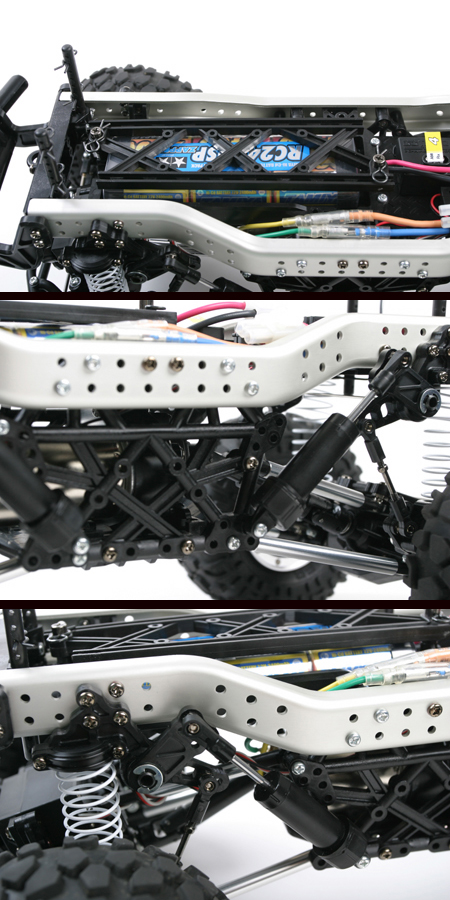 ladder frame CR-01 chassis features pressed aluminum channels and resin cross