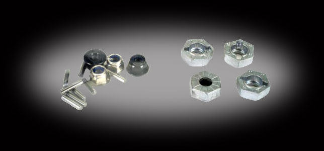 Four hex wheel 14mm silver hubs.