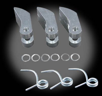 The LOSB3323 Aluminum Clutch Shoe/Spring Set includes three each precision machined billet aluminum clutch shoes and springs as well as six small shims. The aluminum shoes were developed to withstand the pounding of high horsepower off-road racing for extended periods. Since aluminum is not as sensitive to heat and dirt they offer both superior performance and durability. The included shims are used to space the shoes away from the aluminum flywheel preventing unwanted friction and galling. The serious enthusiast as well as the racer will appreciate the consistent performance and reliability of these hi-tech clutch parts.