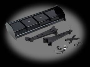 From Baja to your back yard, everyone knows down force helps you put the power to the ground. Now Team Losi helps you put more of that awesome power available in your LST and LST2 to the ground with their new LST rear wing kit. The wing kit includes simple bolt-on struts engineered to be sturdy yet light, all hardware, and a tough injection molded wing. The wing is nothing short of a work of aerodynamic art. The multi-element design produces high down force with a minimum of drag, much like an Indy or Formula One car. The added performance is remarkable but the look is sensational. The addition of the rearward sloping wing protruding up from the back of the bed makes the LST and LST2 look like it’s ready to fly.