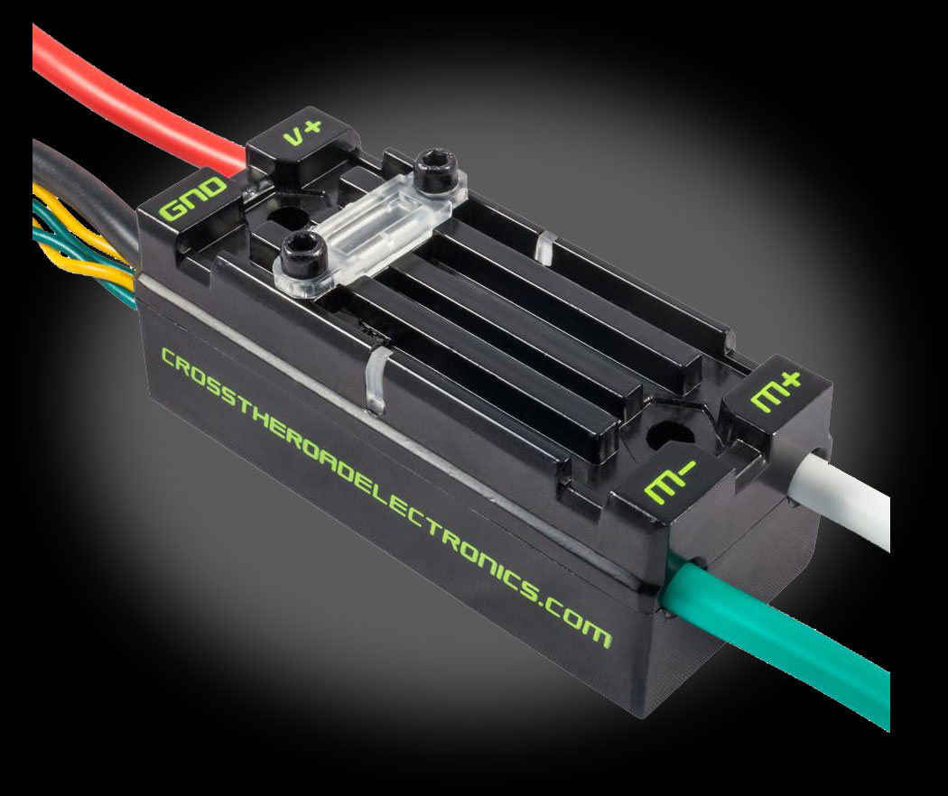 <td><font color="00ff66" size="2" face="Arial, Helvetica, sans-serif">Powers brushed DC motors with variable speed forward, reverse, or off.<br />