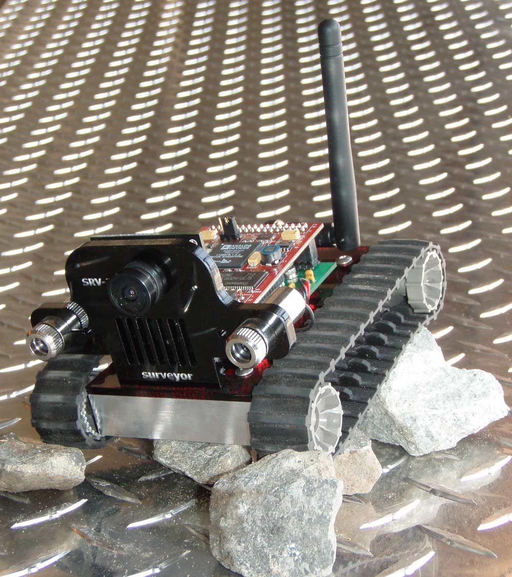a scheduled basis. Additional software support for the SRV-1 is also available by way of <a href="http://www.roborealm.com/help/Surveyor_SRV1.php">RoboRealm machine vision software</a>, <a href="http://www.surveyor.com/MSRS.html">Microsoft Robotics Studio</a>, and <a href="http://www.cyberbotics.com/">Cyberbotic's Webots</a>.