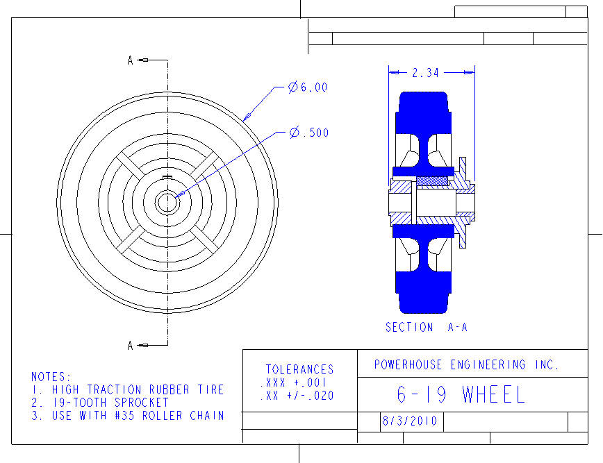 of a geared-down drive motor. Our wheel/sprocket/bearing combination will solve