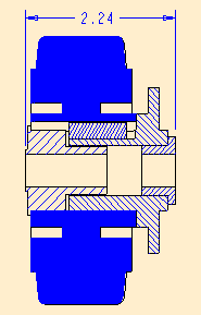 of the hub. The width of the assembly is 2.23 to 2.24" which fits