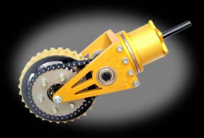 A complete swerve/crab drive module with a 4" wheel based on designs used by the Robonauts, frc118, during FIRST competitions.