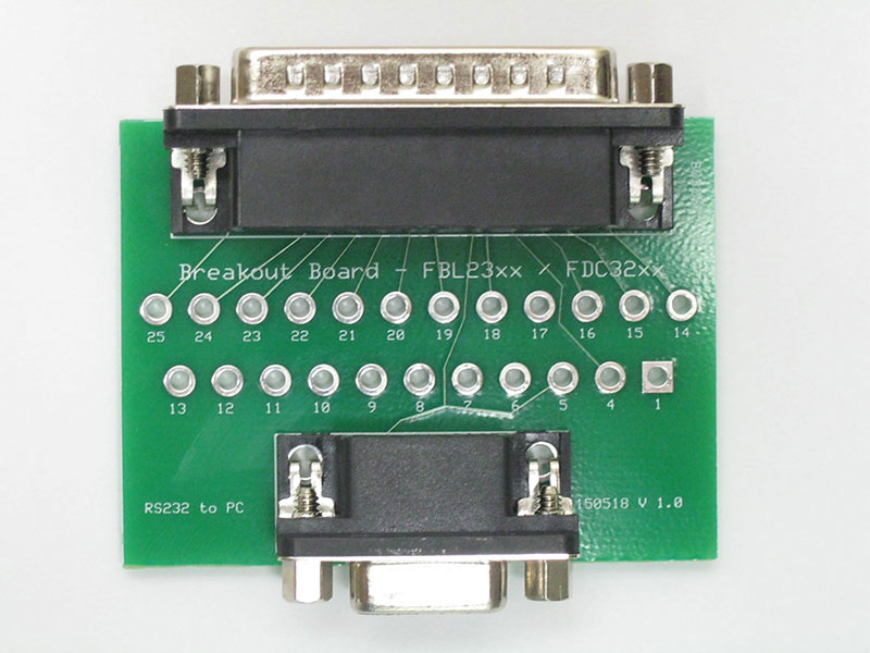 BOB25F break out board for FBL2360 and FDC3260. 9 pin D-Sub cable is not included and is to be ordered separately.