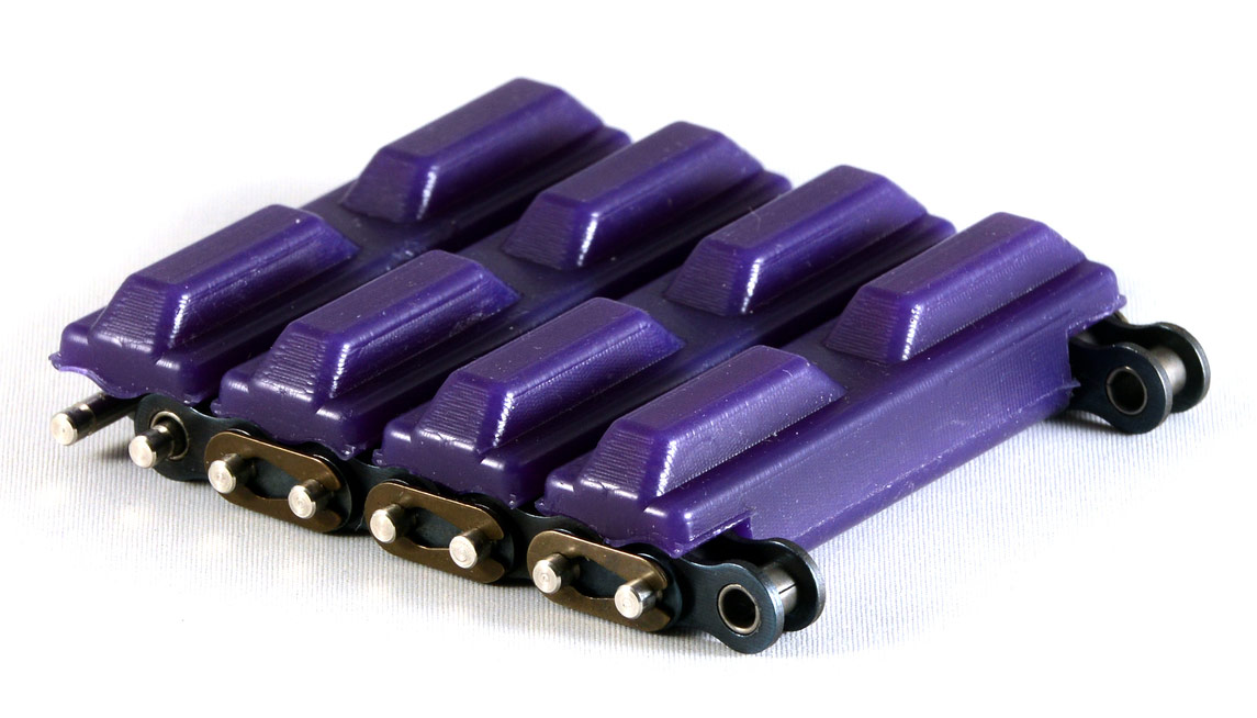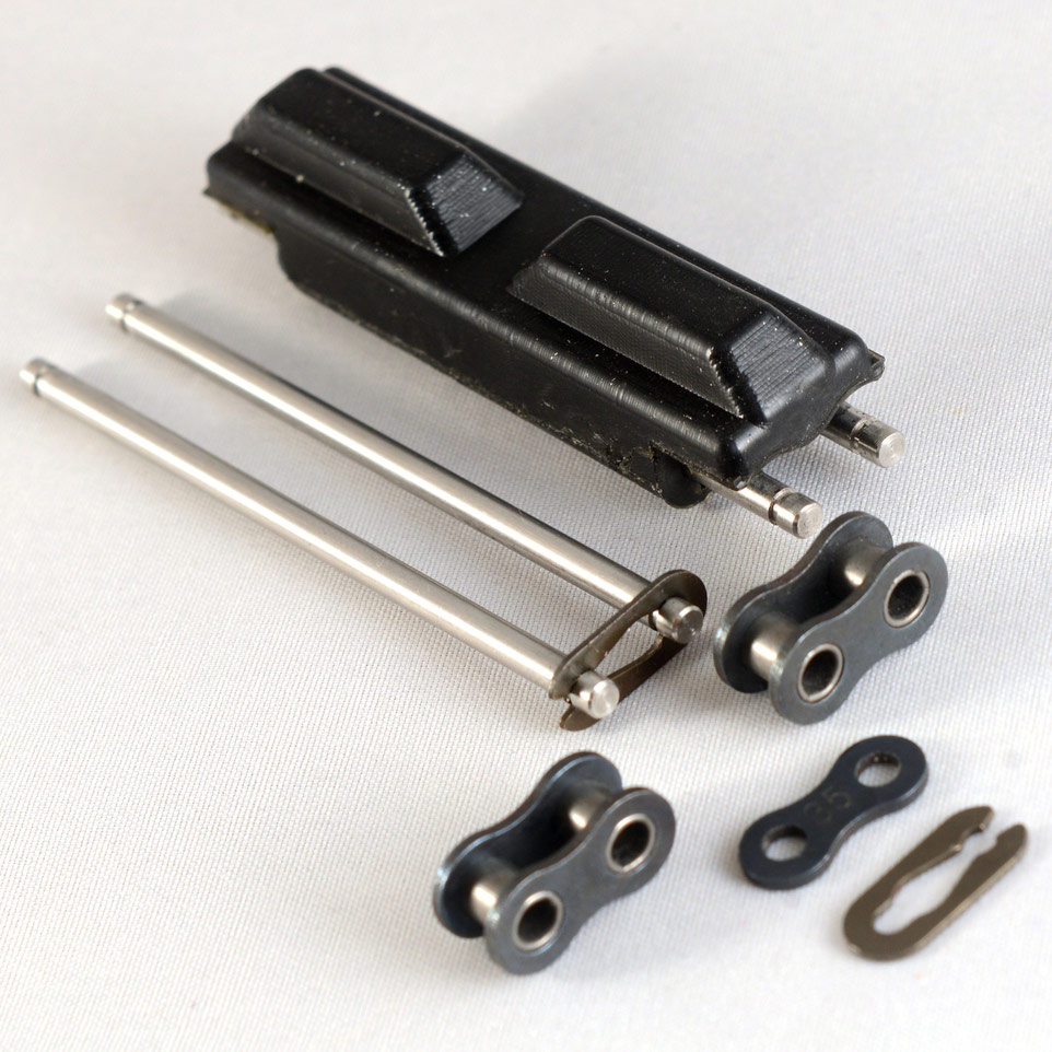 Kit includes 16 treads, and all the hardware needed. Treads are 3 inches wide. Assemble in minutes with no special tools. Works with standard ANSI #35 sprockets. Assembled weight of 1.17 pounds per foot.