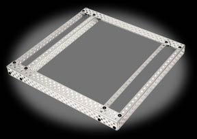 <p><font color="00ff66" size="2" face="Arial, Helvetica, sans-serif">Variable chassis width by mounting the rails inward. Space between rails for protected chain or gear reduction. Extra "fifth hole" in the center of four holes adds additional flexibility. Wheels may be mounted outboard or between the rails. Bumpers may be mounted up-side-down for more flexible designs. The "Super" chassis is taller with more vertical mounting locations.