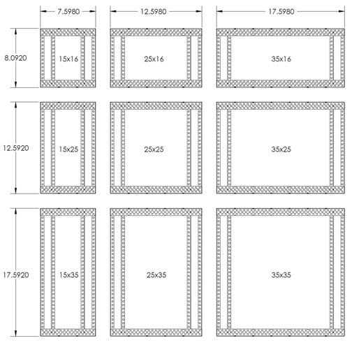 <p><font color="00ff66" size="2" face="Arial, Helvetica, sans-serif">Four sizes available: <a href="VEX-276-2024.html">15x16</a>, <a href="VEX-275-1033.html">25x25</a>, <a href="VEX-275-1034.html">35x35</a>, and <a href="VEX-275-1035.html">35x35 super</a>. Note: Chassis sizes are listed by number of VEX holes, (i.e. a 15x25 chassis is 15-holes wide x 25-holes long).</font></p>