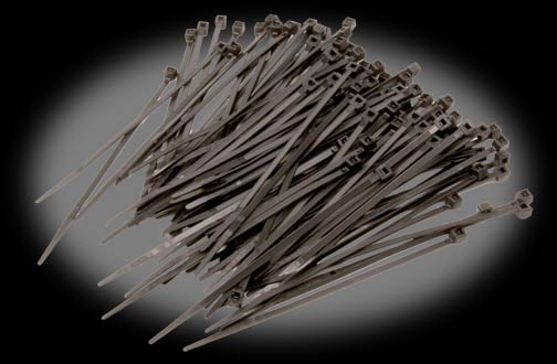 Black Zip Ties used to hold together and manage cables, band rubber chords, or attach to rollers or tank tread to assist an intake mechanism.