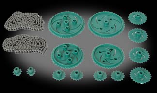 <td><font color="00ff66" size="2" face="Arial, Helvetica, sans-serif">15-tooth sprockets (.75" diameter)</font></td>
