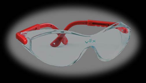 These safety glasses are built from scratch- and impact- resistant plastic, and will provide increased eye protection from accidental physical hazards such as parts that ÒpopÓ loose from a robot, or from accidental contact with a tool while working in very close quarters.