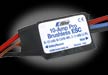 | | 10-Amp Pro Brushless ESC Standard features include advance BEC and safe power-arming along with programmable features such as low voltage cutoff, braking, timing and throttle input range. $27.99 |