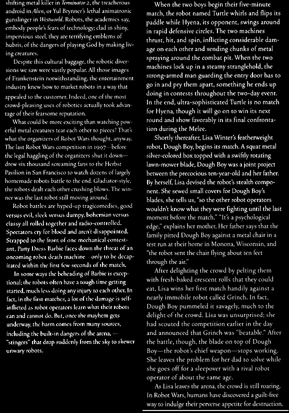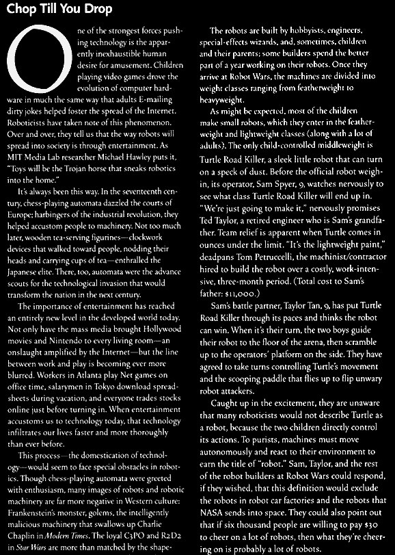 The following appeared in the book "Robosapiens, Evolution of a New Species" by Peter Menzel and Faith D'Aluiso: