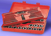 adjustable die holder, adjustable tap T-handle, pitch gauge,