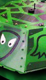 | When Team Steyer decided they were going to retire Turtle after season 4.0, I offered to take him and continue competing with him. They agreed, and so I took Turtle into my home (well, my shop anyway). I decided I needed to make some serious upgrades to Turtle for Season 5.0, starting mainly with the control system, so I basically completely gutted the bot and started over, replacing the entire electrical system. The drivetrain got some minor upgrades, and I did some modifications to the armor to be able to hold up to the mean spinner bots that are out there. I beefed up the underside armor, and added killsaw protection for the chains (which killed Turtle last season). Had the shell repainted (Thanks Shon & Marc!) and Turtle was ready to roll. Once all the additions and upgrades were done, Turtle was actually lighter than before! (mostly due to switching out to NiMh batteries) The bot weighed in at a very lean 87 pounds (out of 120) at the event. |