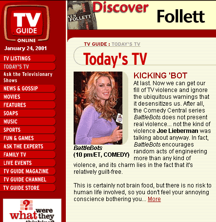 The following closeup feature of BattleBots appeared on TVGuide.com