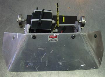 WallopWallop is Team Nightmare's first 3 pound (BeetleWeight) robot, and my first bot with more than 2-wheel drive! Wallop uses a powerful servo lifting arm hooked to a thick titanium wedge-plow. Drive power is four B62 gearmotors run by 22.2V of LiPoly batteries. For arenas with a steel floor, Wallop uses four powerful neodynium magnets for wheels, giving him amazing traction. This bot can can drive around upside-down on a steel surface, or up a steel wall (cool to show off).